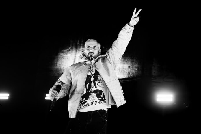 Het nummer is een afrekening met valse vrienden die hem lieten vallen toen hij die fles liet. Het is een zeldzame sneer, want in de ING Arena, zijn grootste zaalshow ooit, draaide het rond liefde, voor al zijn families. “Zijn jullie ready om mee gesguydenis te schrijven”, brult hij, en je weet dat hij dat in zijn hoofd zo schrijft. “Probleem” is het eerste bommetje, een ode aan zijn crews van M.O.L.E.M. en G.A.N.S.Hash van weleer; 1080 in postcode-lingo. Op het scherm flitsen punkstencils, want ook dat is hiphop.